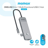 Momax USB-C 8 in 1 100W Power Delivery Hub -Titanium Support 100W PD3.0 Fast Charing, USB3.2 Gen1 High-speed transmission, 1x USB-C, 2x USB-A, 1x (4K 60Hz) HDMI, 1x Ethernet, 1x SD slot, 1x TF card slot