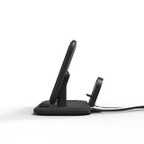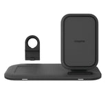 Mophie 15W Wireless Charging Stand - Black, Charge up to Three Devices Simultaneously (2 by Wireless charging + 1 USB Wired charging) Includes Apple Watch Charging Stand and Wall Adapter, USB-A Port