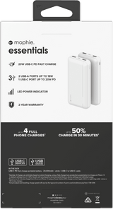 Mophie Essential PowerStation 20K PD 20W-2A1C White