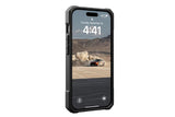 UAG Monarch Kevlar Apple iPhone 15 Pro (6.1') Case - Kevlar Black (114278113940)The latest iteration of our Monarch series now features an updated and enhanced design with new features, solidifying its position as the best case in the game. The Monarch series offers 5 layers of premium protection, providing the ultimate safeguard for your device. It features a shock - resistant core, an unmistakable signature armor frame, and is layered with DuPont Kevlar®. Additionally, the Monarch series includes a polycarbonate shear plate, alloy metal hardware, and an impact - resistant rubber surround, ensuring comprehensive protection against daily wear and tear. We've engineered sculpted corners for reinforced drop protection, while the contoured perimeter edge offers a tactile grip for better handling on the go. Elevate your device's defense to the next level and experience the confidence that comes with knowing your essential tech is fully protected. Features:5 layers of protectionSoft impact - resistant core & protective screen surround. Traction grip & oversized tactile buttonsCompatible with wireless charging on most 3rd party wireless chargers & compatible with Apple Pay20ft. Drop Protection (6 meters)Limited Lifetime WarrantyRaised Screen SurroundTactical GripSpecificationsWeight : 0.11 lbLength : 6.02 inWidth : 3.09 inDepth : 0.61 in
