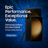 - Samsung Galaxy S23 Ultra 5G 128GB (As New Grade with no visible marks) in a generic box