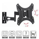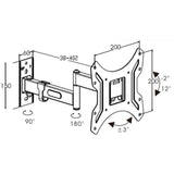 Loctek Pro Mount, 14"-43" Full Motion TV Wall Mount - Max Load 25kg - Max VESA 200x200mm - Tilt -2+12deg - Swivel -90 +90deg. - TV To Wall 38-402mm - 5 Years Warranty