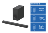 Whether you're watching the big game or hosting a movie night, the multiple sound modes let you customise audio to suit what you're watching. Connect via optical input or HDMI ARC to enhance the sound from your TV. Measuring just 64mm high and 900mm wide, this soundbar fits neatly under your TV without cluttering your space. Weighing only 2.4kg, it's easy to install almost anywhere.