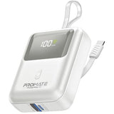 Promate 10000mAh Ultra Compact 35W SuperSpeed Power Bank with Built-in USB-C & Lightning Cables - 35WPD, USB-C In/Out - LED Battery Display - Automatic Voltage Regulation - White Colour
