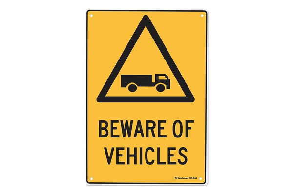 Beware Of Vehicles 450x300mm Safety Sign Polypropylene Wall Door Mountable