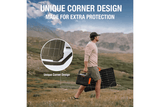 Dual – Sided Panels Enhanced Solar Efficiency: The upgraded solar panel can generate electricity from both sides. Extra – white glass (92% transmittance rate) used on the back panel helps boost conversion rate. A reflective lined carrying bag is specially designed to reflect extra solar energy.