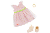 - Includes: 18” doll, an enchanting star-print dress with a lime green waistbelt, shoes with 3D wings, a pair of undies, a shooting star bracelet, 2 balloons, a cupcake, a wish list, a roll of stickers, a “magic” jar and a backpack to hold accessories.