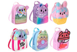 - There are 6 mini animal and food-themed scented backpacks in different colors and finishes to collect!