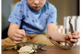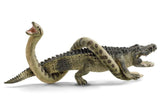 Schleich’s Danger in the Swamp is a wild animal encounter you definitely don’t want to get in the middle of. The deadly and uniquely flexible anaconda threatens the alligator and her nest of eggs, initiating a fierce reptilian fight. Both animals are painted in swampy hues of green and brown and are highly detailed.
