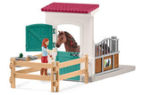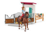The beautiful Quarter Horse gelding is a little impatient today because he wants to go outside and can hardly wait. The two of them have planned a nice long ride in Peppertree Forest. Hannah has already dressed for it. She’s wearing a smart hat and a matching Western-style shirt. Cayenne also sports a pretty bow in his thick tail. Hannah now puts the saddle on the horse and helps him into the bridle. Is everything prepared? Well, then, ready, steady, go!
