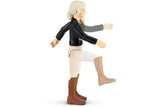 The prize ribbons, gold medal and trophy show shared riding achievements that the fully moveable Tori figurine has had with her beautiful Frisian mare, Princess. The walls of the box are decorated with beautiful stickers that can be written on. The roof is removable and can be used as a separate stable. Bridle, reins and saddle are ready for the next training – as is the carrot for a reward. While the mare stands contentedly at the hay rack and trough, Tori’s cute chihuahua, Beauty, runs around the box