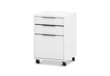 * Sleek, Modern White Hi-Gloss Finish with Contrasting Matte Black Handles