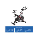 The friction brake system enables quick stops when needed. With its sturdy steel frame, carved saddle and 130kg max user weight, this spin bike is built to last through many high energy cardio sessions.