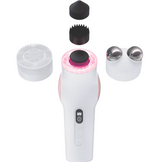 The interchangeable massage attachments in cone, micropoint and flat shapes allow you to target different areas of the face, while the Microcurrent Ring and LED Light Therapy help improve skin tone and texture.