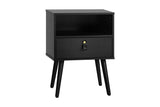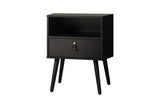 Oikiture Bedside Table Drawer Side Table w/ Leather Handle Black