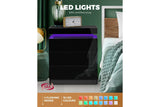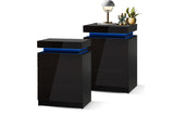 Oikiture Bedside Tables Set of 2 LED Nightstand Black