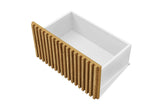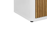 Featuring a fresh white finish, its sleek design is enhanced by on-trend curved edges for a contemporary touch. The single push-open drawers showcase stylish panelled detailing, offering hidden storage while maintaining a seamless look. A striking contrast between the natural-toned drawer fronts and the fresh white frame adds visual interest.