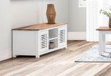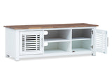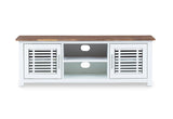Featuring a modern two tone design with a slatted feature on top, the Santo Andre entertainment unit is a staple in your coastal inspired home.