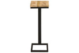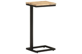 This end table is made of rough mango wood, a tropical hardwood with the strength to bear the weight and also stand the wear and tear of time. Additionally, the exquisite craftsmanship and beautiful wood grains make every piece slightly different from the next. The powder-coated iron legs add to its sturdiness.