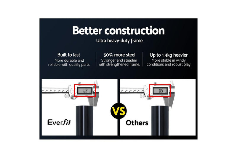 If you love the beautiful game, you will surely love the Everfit Portable Goal. Easy to set up, the portable goal comes with a sturdy powder-coated steel frame and a high-density PE net to practice your free kicks, penalty kicks and more. Get another one and you can have a five or seven-a-aside game in any flat open ground. The frame itself is made with 50% more steel for extra durability. Plus, the four ground stakes ensure that the entire ensemble stays firmly in place with robust play. Not least, you can carry the goal easily to any location for a game with the bonus carry bag. Ready to be the next Ronaldo?