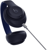 Immerse yourself in superior sound with the Beats Studio Pro wireless over-ear headphones in sleek navy. These headphones let you enjoy the signature Beats sound for up to 40 hours on a single charge. Equipped with Active Noise Cancelling and real-time audio calibration, the Studio Pro headphones block external noise while delivering clear, balanced sound. The on-ear controls and built-in microphone allow you to take calls, skip tracks, and activate Siri seamlessly.