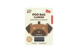 Poo Bag Carrier Dispenser attaches to your dog’s leash with a buckle, looks as cute as your best friend, and uses standard roll poo bags.