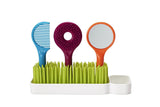 The grass blades hold everything upright and the little side caddy is perfect for cotton swabs, hair ties, and other adorableness-enhancing gizmos. Swoon.