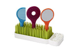 Grass basin has a separate compartment for storing small items. Grass blades hold items upright.