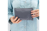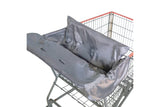 The cover attaches to shopping carts and high chairs with multiple hook and loop attachments, and easily stuffs into its attached pouch when not in use. Machine washable.