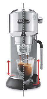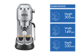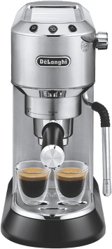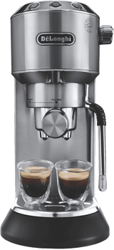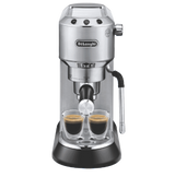 Bring cafe-quality espresso right to your kitchen with the DeLonghi Dedica Arte manual coffee machine. This sleek stainless steel machine delivers barista-approved coffee drinks with its 15-bar pump pressure and fast 40-second heat up time. The manual espresso maker's compact size takes up minimal counter space but packs in useful features like a 1.1L removable water tank, flow stop to customize drink volume, and a milk frother wand to create creamy cappuccinos or lattes. With a thermoblock heating system to ensure optimal brewing temperature, the Dedica coffee machine makes it easy to pull rich, aromatic shots of espresso.
