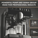 Additional Features: When the machine is low on water, it'll let you know. Conveniently refill water from the top water tank cover or by removing the water tank from the back. Barista levers to easily operate steam pressure and hot water. 58mm commercial size group head