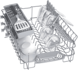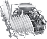 The settings of this Bosch dishwasher can be controlled via the Bosch Home Connect app on your smartphone - review the Easy Start best program recommendations based on your input on the type of dishes and cleaning preference option selected, view the estimated water and energy consumption of each program, or adjust a wash option even after the program has started - like speed up program time by up to 50%. Other convenience features include a Rack Stopper to prevent derailing of the bottom basket, and a dedicated cutlery rack in the upper basket to safely place knives.