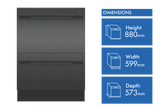 The Fisher & Paykel 60cm Double DishDrawer in stylish black brings a modern, sophisticated look to your kitchen. With its whisper-quiet 43 decibel operation, you can run a load any time without disruption.