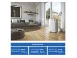 Measuring 425mm wide, 345mm high and 700mm deep, the sleek white design blends into any living space. It also comes equipped with a 24 hour timer so you can set it and forget it. With the window kit, you can vent the unit through a window to maximize efficiency.