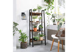 - Introducing our versatile and stylish ladder shelf from the collection! With four tiers, this industrial rustic brown and black metal frame shelf is perfect for displaying your treasures and adding a touch of rustic charm to any room. Its sturdy construction and adjustable feet ensure stability for years to come, while the easy assembly process makes it a hassle-free addition to your home. So why settle for a basic shelf when you can showcase your unique style with our ladder shelf?
