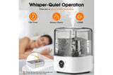 【5L Large Water Tank】This room humidifier has 3 adjustable Mist Levels and 360° rotating nozzle, and the large 5L water tank allows the humidifier for bedroom to work continuously for up to 50 hours on a low setting without the need for frequent refilling! Top water design makes cleaning easier.