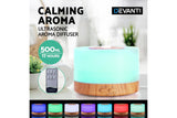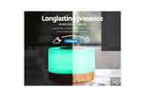 Devanti Aroma Diffuser Aromatherapy Led Night Light Air Humidifier Purifier Round Wood Grain 500Ml Remote Control Humidifiers