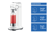 The specially designed cap infuses drinks with CO2 while keeping them fresh and sealed. Plus, the dishwasher-safe bottle ensures easy cleanup after use. At 430mm wide, this compact soda maker fits perfectly on countertops without taking up too much space.