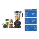 Brew up a storm in your kitchen with the powerful Nutribullet Blender Combo 1200. This matte black blender packs a punch with 1200 watts of blending power and 3 speeds to handle all your mixing, pureeing and extraction needs. The generous 1.8 litre pitcher is BPA-free and perfect for family-sized batches. Extract hidden nutrition from fruits, veggies, seeds and nuts using the stainless steel extractor blade.