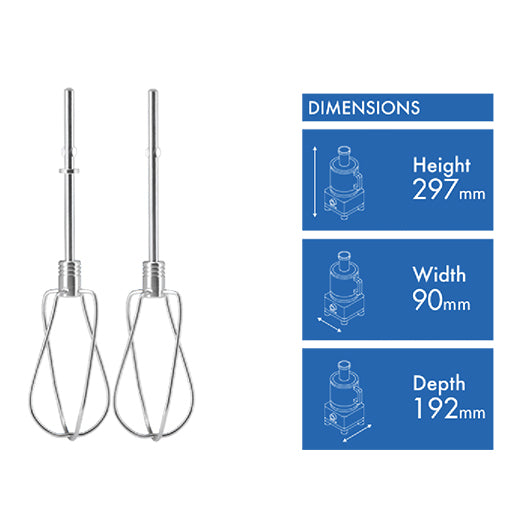 | What's In The Box: | 1 x 9 Cup work bowl, 1 x Dough blade, 1 x Multi-purpose four blade, 1 x Lid with 2-in-1 Feed tube, 1 x Whisk accessory, 1 x Reversible slicing/shredding disc |
