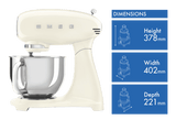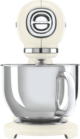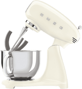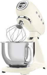Bring a touch of retro style to your kitchen with the Smeg 50's Style Mixer in cream. With its smooth die-cast aluminium body and sleek rounded design, this stand mixer makes a stylish statement on your countertop.