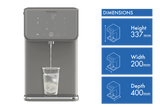 With a generous 2.8L capacity and multiple temperature settings from ambient to 100C, this water station delivers piping hot water in seconds. The intuitive controls and compact 400mm x 200mm x 337mm size allow this water station to fit effortlessly into any home or office. Additional useful features include a 2 year warranty, a filter life of up to 100L or 1 month, and a stylish cool gray finish. Experience the convenience of great tasting hot and cold water anytime with the Philips Hot and Cold Compact Water Station.