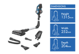 | What's In The Box: | 1 x crevice nozzle, 1 x mattress nozzle, 1 x charging cable, 1 x exchangeable battery pack, 1 x docking station, 1 x 2in1 furniture brush & upholstery nozzle, 1 x Long flexible crevice nozzle |
