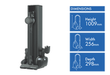 Switch from normal wet mop mode to hot mop mode, by inserting the 2nd battery pack into the mop head to help combat stubborn stains. The All-in-One Tower is the right place for all the right tools. The stylish, free standing tower stores all included accessories neatly, without the need to wall mount, plus it cleans up, then cleans itself!