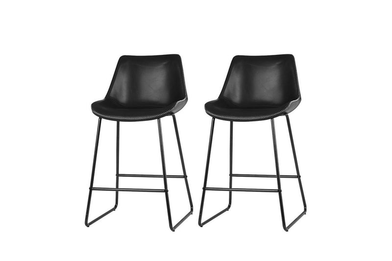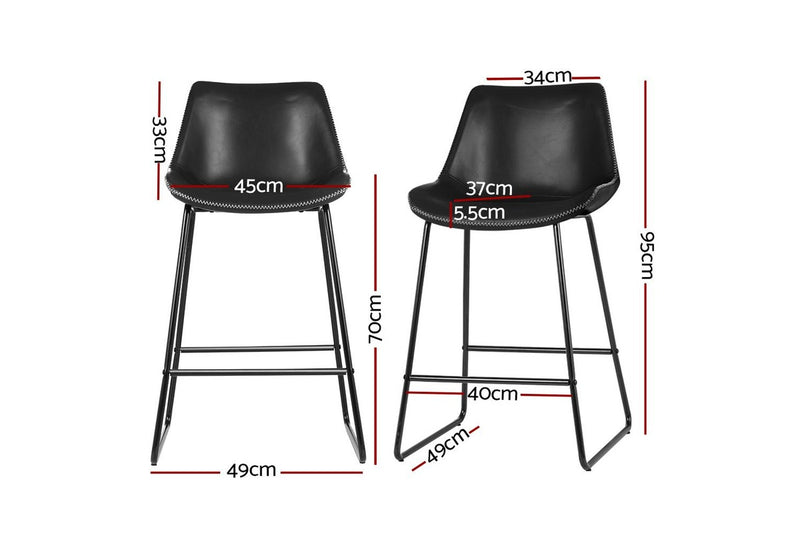 Artiss 2x Bar Stools Leather Padded Metal Legs Black