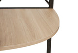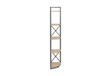 The Dunn 5 Tier Corner Bookcase features natural-coloured finished shelves supported by a sturdy metal frame, making it a stylish and practical addition to any room.