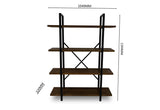 The Potter 4 Tier Bookcase features a sturdy black metal frame with a cross-back design, adding an industrial touch to any space.