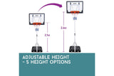 You can be sure that your fun will last, with easy and quick set up. The Dr Dunk 8.5ft Basketball Hoop System includes a 33” x 23” clear polycarbonate backboard, an adjustable steel pole, and a weighted mobile base on wheels that can take 90 litres of water for supreme stability. Set up and start shooting today.