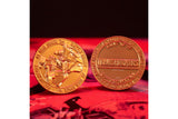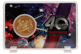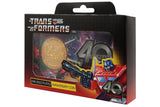 At war since ’84, the Transformers and their two factions the Autobots and the Decepticons , led by Optimus Prime and Megatron, were in stasis for millions of years after they crash-landed on Earth, but were awoken just 40 years ago to continue their fight. This 24k gold plated coin, limited to 1,984 worldwide, commemorates that fight by depicting the two leaders at loggerheads.