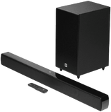 Enhance your home entertainment with the JBL SB170 2.1ch 220W Soundbar. This sleek, black soundbar delivers an immersive 220W audio experience from its 2.1 channel setup. Stream music wirelessly via Bluetooth 4.2 connectivity. The compact 62mm height fits effortlessly below your TV while its 900mm width fills your space with JBL's signature sound.